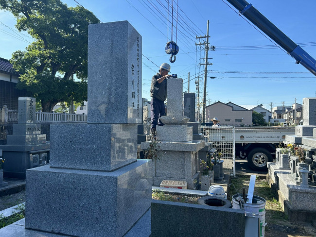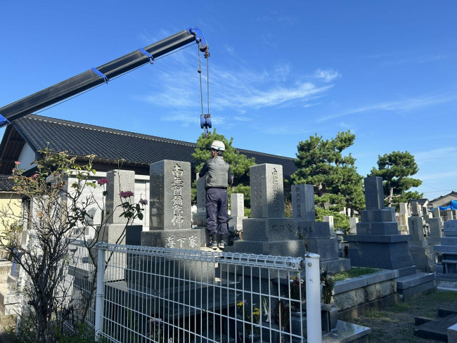 京都では珍しい地上納骨で、ユニックやカニクレーンが無いと本当に仕事にならなかったですね。