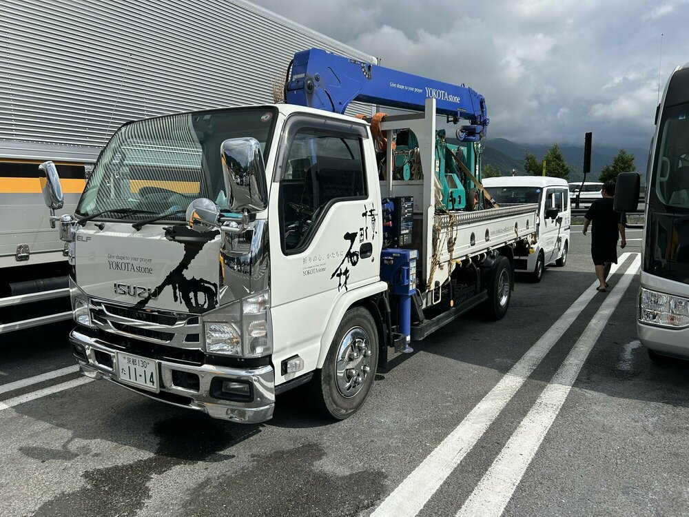 富山県高岡市にある山岡石材さんからの依頼の元、微力ながら3トントラックにカニクレーンと道具を積み込み京都府福知山市から富山県高岡市へと向かいました。