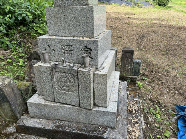 見て分かりますがズレていました。このタイプの墓石の改修工事は地元福知山でもありますので、地元に居る感覚で作業を進めて行きました。